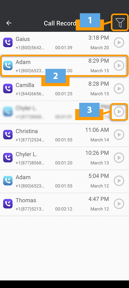 This is where you can see all VoIP Call Recordings that have been made to or from the Target Device. There are three main sections as follows Call Recording Selector Call Recording Event Play Function Call Recording Selector Filter between incoming ...